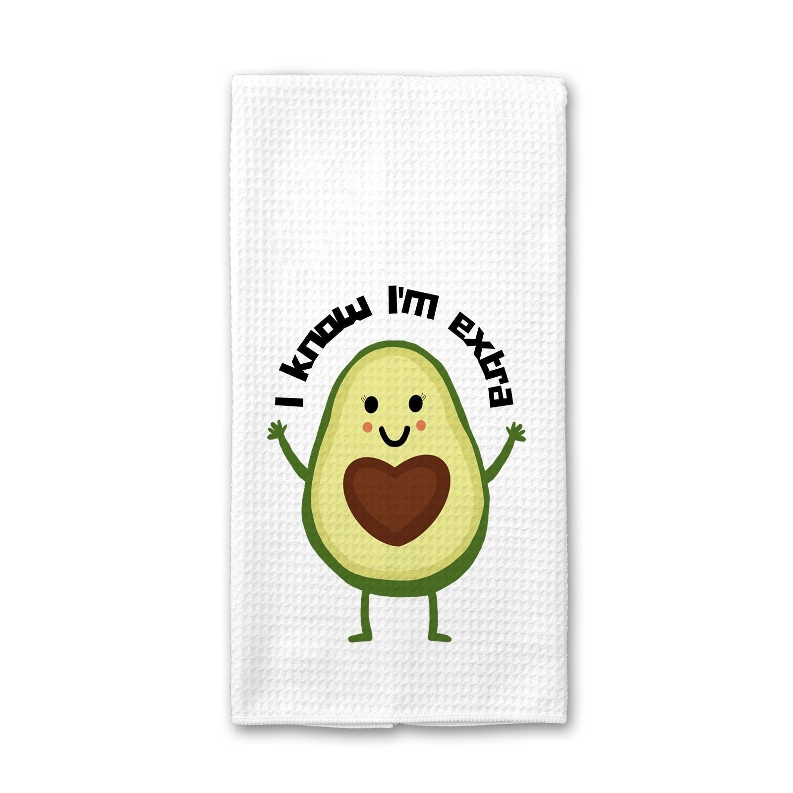 Add some sass to your kitchen with our "You Know I'm Extra" waffle kitchen towel, featuring a playful avocado proudly declaring its extra status. Crafted from high-quality waffle fabric, this towel is as amazing as avocado itself! Whether you're drying dishes or simply embracing your love for all things extra, this towel is sure to make a statement in your kitchen!